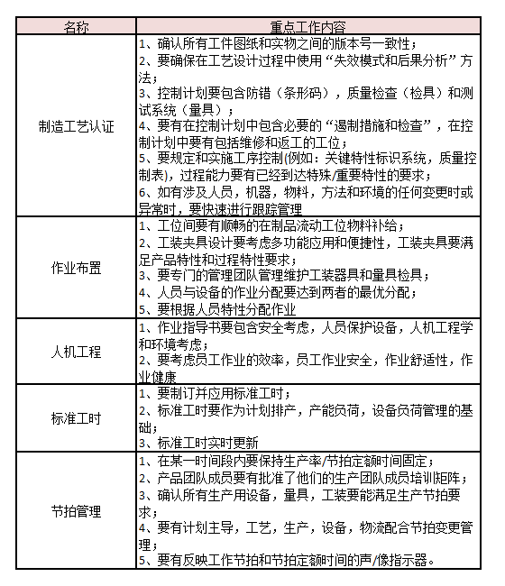 卓越工藝要素工作重點