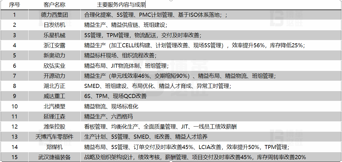 駐廠經驗:具有4年全職駐廠咨詢協助客戶推進精益管理工作經驗,對于民營企業階段性精益管理需求和推進工作具有深刻地認識。