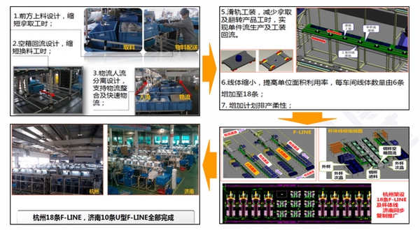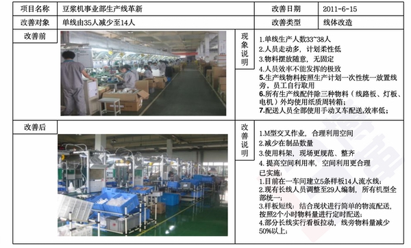 建立23人精益線:站立作業(yè)、工位料架、手傳式作業(yè)、局部皮帶傳送、螺絲刀等進行吊裝;