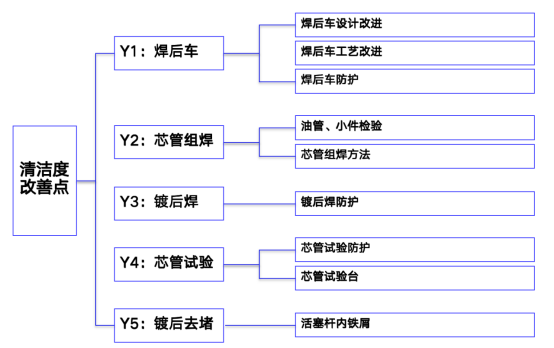 根據工藝流程分析,確定影響清潔度的因子,并確定對應改善方案。