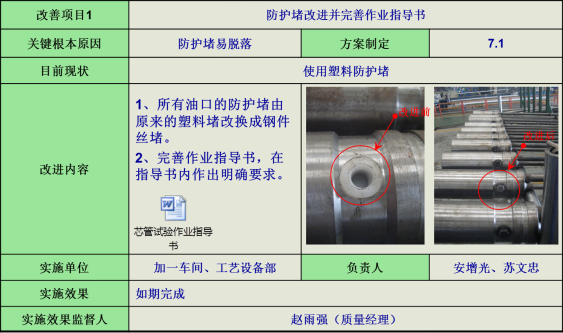 7)芯管試驗防護,針對防護堵易脫落問題,改進防護堵并完善作業(yè)指導書
